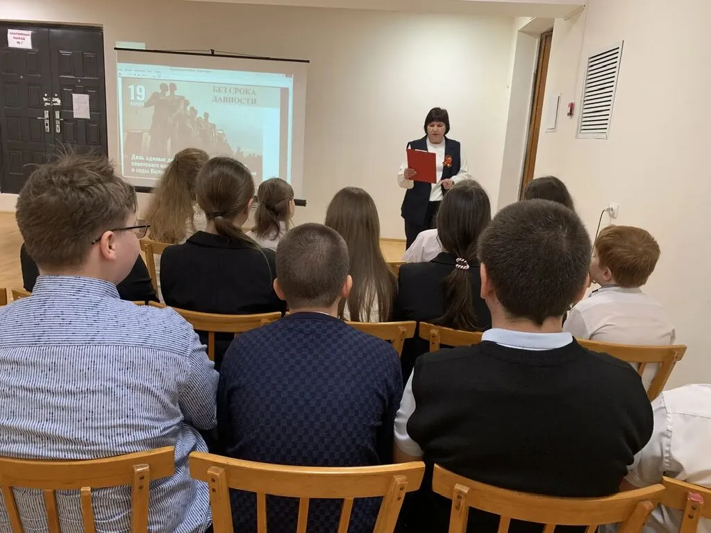 В рамках этой памятной даты ребята узнали ,о том почему так важно сохранять память о трагических страницах истории. Школьники услышали о страшных событиях прошлого - преступлениях нацистов и их пособников против мирного населения в годы ВОВ, о страданиях людей оказавшихся в концлагерях. А также детям была дана информация о жителях Ленинграда еврейской национальности эвакуированных в село Горькая Балка , и зверски расстрелянных фашистами.Ведущая прочла "Балладу о речке Горькая Балка" ленинградского поэта В. Шумилина.