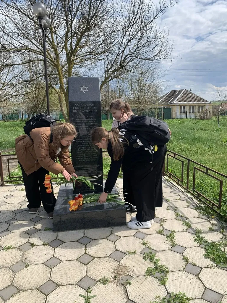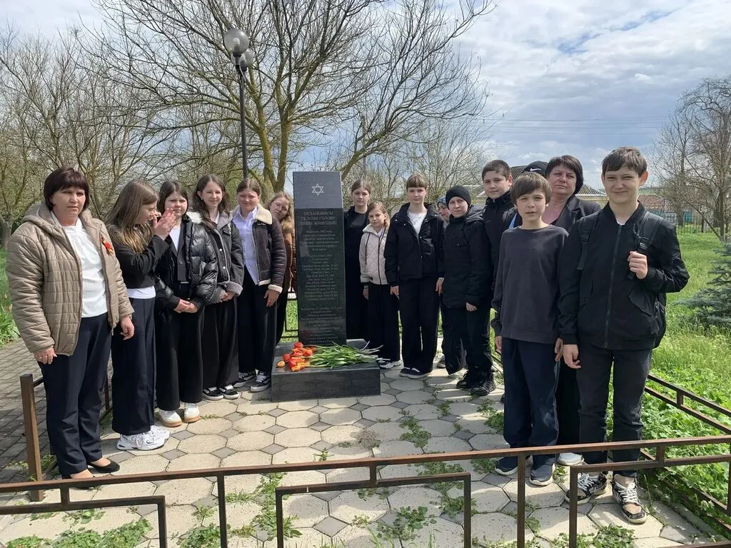 Ребята почтили минутой молчания память о погибших, и возложили цветы к памятнику евреем расстрелянным в поле села Горькая Балка. Такие мероприятия помогают воспитывать в молодёжи уважение к истории, чувство патриотизма и